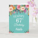 67th Birthday Watercolor Floral Flowers Teal Card with personalised name and age. For further customisation, please click the "Customise it" button and use our design tool to modify this template.