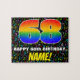 This bold and joyful birthday-themed jigsaw puzzle design features a large number “68” with a multicolored rainbow spectrum inspired gradient pattern, along with the message “HAPPY 68th BIRTHDAY,”, and a personalised recipient name. The background features an eye-catching pattern of music notes with various colours and sizes. A vibrant, customised birthday puzzle like this might be a fun way to deliver birthday greetings to somebody who is celebrating their sixty-eighth birthday. These might be more meaningful if that person is a musician, a composer, a songwriter, a singer, or likes listening to music. [~Z0000608]