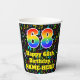 This joyful and exciting music themed birthday paper cup design features a large number “68” having a rainbow spectrum gradient inspired pattern. It also features the message “Happy 68th Birthday,”, and an editable name. The background features a vibrant and colourful pattern of various music notes and symbols having a variety of colours and sizes. Vibrant, colourful paper cups like this might be fun to use at a birthday celebration being held in celebration of somebody’s 68th birthday. [~Z0000541]