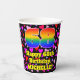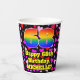 This colourful and happy birthday paper cup design features a large number “68” having a rainbow spectrum gradient inspired pattern. It also features the message “Happy 68th Birthday,”, and a customisable name. The background features a pattern of heart shapes with colours like purple, pink, and red. Friendly, loving paper cups like this might be fun to use at a birthday celebration/party being held in celebration of somebody’s sixty eighth birthday. [~Z0000548]