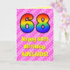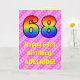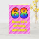 68th Birthday: Pink Stripes & Hearts, Rainbow # 68 Card
