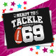 This football birthday design is perfect for a 69th birthday football theme birthday party to celebrate turning 69 years old! Features 'Ready To Tackle 69' 69th birthday football quote with football graphic. Perfect for anyone who loves football turning 69 years old!