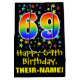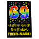 This exciting, fun, and colourful birthday gift bag design features a large number "69" with a rainbow spectrum gradient inspired pattern, along with the message "Happy 69th Birthday,", and a customisable recipient name. It also has a background pattern featuring star shapes of various sizes and colours. A giftbag like this might be a fun way of wrapping a birthday present or gift being given to somebody who is celebrating their sixty ninth birthday. [~Z0000510]