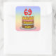 69th Birthday: Fun Cake and Candles + Custom Name Square Sticker