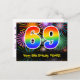 69th Birthday – Fun Fireworks Pattern + Rainbow 69 Postcard