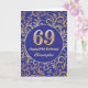 69th Birthday Navy Blue and Gold Floral Pattern Card