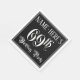 This ornate and elaborate birthday-themed paper napkin design features a customizable name and the message “69th Birthday Party”. The large number “69th” and the words “Birthday Party” are in fancy script-style text. The background is colored black by default (although it can be customized). Opulent, elegant paper napkins like this might be useful to have at a birthday party being held in celebration of somebody’s sixty ninth birthday. [~Z0000563]