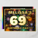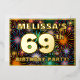 The front of this joyful sixty-ninth birthday celebration foil invitation card design features a personalised name, a large number “69th”, the message “BIRTHDAY PARTY!”, and a border. The background of the front features an exciting, multicolored pattern inspired by bursting celebratory fireworks. The back features personalised details about the event, such as the date, time, venue/location, and any other important information. Personalised invitations like these might be a fun way to invite guests/attendees to a birthday party/gathering being held to honour somebody’s 69th birthday. [~Z0000602]