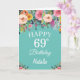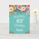 69th Birthday Watercolor Floral Flowers Teal Card with personalised name and age. For further customisation, please click the "Customise it" button and use our design tool to modify this template.