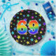 This fun, cheerful, and colourful paper plate design features a large number "69" having a rainbow spectrum gradient inspired pattern colouring. The background features a colourful pattern of star shapes. Fun paper plates like this might be used at somebody’s 69th birthday party, or a couple’s sixty ninth anniversary celebration, or some other sixty ninth event. [~Z0000493]