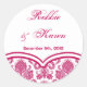 6 - 3" Favour Stickers Fusia White Damask Lace Pri