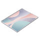 This is a captivating abstract artwork chraacterised by its soft, flowing lines and harmonious blend of pastel colours. The composition features organic, undulating shapes that gracefully interlock and overlap, creating a sense of gentle movement and fluidity. The primary colours include delicate blush pinks, serene sky blues, and soothing lavender purples, with subtle hints of mint green and cream. Fine, delicate white lines weave across and within some of the larger coloured sections, adding intricate detail and visual texture without disrupting the overall minimalist aesthetic. The overall impression is one of calm, elegance, and modern artistry, making it an ideal design for a Notebooks & Journals Cover.