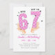 Six Seven Birthday Party Invitation , 6 7 Pink 7th Birthday Invite, Trendy Retro Star Seventh Girl Birthday Invite.