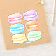 A set of 6 sweet macaron stickers in a variety of colours -- pink, lilac, blue, orange, gold & green - on this 6" x 6" sheet, each sticker measures approximately 2.5" - by katz_d_zynes