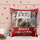 6 Photo Collage Foliage Merry Christmas Family Cushion
