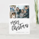 Elegant stylish simple black and white Merry Christmas folded holiday card with modern handwritten calligraphy script, 6 custom family photos, and personalised text.