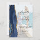 6-Photo Navy Blue Gold Agate Wedding Invitation