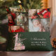 Celebrate your baby girl’s very first Christmas with this heartwarming holiday photo card! Featuring a soft watercolor teddy bear, festive pink gifts, a pastel tree, and space to highlight your newborn’s name, birth date, weight, and height — this card is the perfect keepsake for proud new parents. The rich forest green background and cosy photo layout make it both classic and charming. A must-have for sentimental moms and holiday magic lovers.