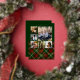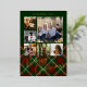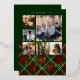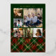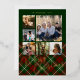 Elegant stylish plaid tartan real gold foil Merry Christmas script six family photos classic traditional red green holiday card with your custom personalised text on both sides.
