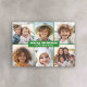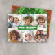 FRONT - 6 Photo Collage with an area for type and a tie-dye accent. The words "merry christmas" is in a retro font that coordinates with the non-traditional background. The 6 photos work best if you crop your photos into square before uploading. Add your greeting and family signature to this eclectic and colourful design.