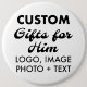 Custom Gifts for Him personalised 6" Giant Round Button Pin Badge. Upload logo, photo, image, design and add your own text to make your own personalised birthday, Christmas, Father's Day, Valentine's Day celebration, office gifts for him (man, men, husband, boyfriend, father, dad, young man, son).