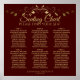 6 table wedding seating chart designed to help your guests find the right table at your reception. The simple yet elegant design features gold print on a chocolate brown or auburn colored background. Chic script lettering with a floral filigree border.