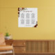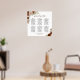 This 6 table wedding seating chart features a beautiful hand painted watercolor design with roses, flowers, and autumn foliage in shades of rust orange, coral peach, and burnt umber. It has space for 60 guests with 10 seats at each table, with an elegant script calligraphy title, and space for the names of the couple and wedding date below. Wonderful way to add a touch of boho chic fall colours to your wedding reception while making it easy for your guests to find their seats.