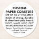 6 x Custom Personalised 4" ROUND Paper Coasters