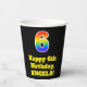 This exciting and fun birthday-themed paper cup design features a large number “6” with a rainbow spectrum gradient inspired pattern, along with the message “Happy 6th Birthday,”, and an editable name. The background is coloured black. Vibrant, colourful paper cups like this might be fun to have at a birthday celebration/party being held in celebration of somebody’s 6th birthday. [~Z0000537]