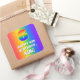 This vibrant and joyful birthday-themed square sticker design features a large number “6” with a colourful rainbow spectrum inspired gradient pattern, along with the message “HAPPY 6th BIRTHDAY,”, and a customisable recipient name. The background also features a cheerful multicolored rainbow spectrum inspired gradient pattern. Fun, fun, personalised stickers like this might be given as a birthday present, or used while wrapping gifts, or perhaps used as a birthday party decoration when celebrating somebody’s 6th birthday. [~Z0000571]
