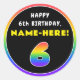 6th Birthday: Colourful Rainbow # 6, Custom Name Classic Round Sticker