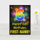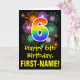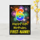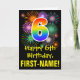 The front of this exciting, fun, and colorful birthday themed greeting card design features a large number "6" with a rainbow spectrum gradient inspired pattern, along with the message "Happy 6th Birthday,", and a custom recipient name. The front additionally features a colorful background pattern inspired by bursting celebratory fireworks. The inside features a customized birthday greeting message, or could perhaps be cleared and left blank if a message is to be written by hand instead. A birthday card like this might be a fun way to send birthday wishes to somebody who is celebrating their sixth birthday. [~Z0000442]