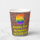 This vibrant and exciting urban graffiti and street art themed birthday paper cup design features a large number “6” with a colourful rainbow spectrum gradient inspired pattern, along with the message “Happy 6th Birthday,”, and an editable name. The background features a brick wall pattern. Colourful, vibrant paper cups like this might be fun to have at a birthday party/celebration being held in celebration of somebody’s sixth birthday. [~Z0000543]