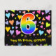 6th Birthday: Fun Hearts Pattern, Rainbow 6 Postcard