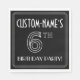 This luxurious 1920s/1930s era inspired art deco style birthday paper napkin design features a personalised name, along with the message “6TH BIRTHDAY PARTY!”. The number “6TH” has a fancy geometric lined look. Stylish paper napkins like this might be fun to use at a party in honour of somebody’s sixth birthday, or some other 6th event. [~Z0000659]