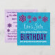 This contemporary design with its purple lace flowers and a background of stars is a fun way to invite folks to a six year old's birthday party celebration. All text is customisable. You can experiment with different paper types by clicking on the "Invitation Options" tab on the upper right hand corner. I recommend this design on an ice hued metallic paper which gives your invitation a festive shimmer and shine.