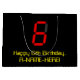 This geeky and silly birthday gift bag design features a large number "6" with a red seven segment digital display style look, along with the message "Happy 6th Birthday," and an editable name in geeky retro style yellow text, on a black coloured background. Editable gift bags like this might be used for wrapping gifts or presents being given in honour of somebody’s sixth birthday. [~Z0000389]