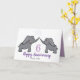 An illustrated 6th iron wedding anniversary card in purple, gray and white with an elephant couple.