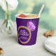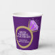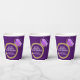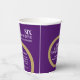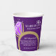 Amethyst and gold ring modern fun fact and wedding anniversary party paper cups. Personalise these 6th wedding anniversary cups with your own name and fun facts about your couple. Other matching items are also available. © Original graphic ring design by Sarah Trett for www.mylittleeden.com and www.mylittleedenweddings.com on Zazzle.