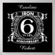 A design to celebrate your sixth year of marriage. This first wedding anniversary design has a distressed white crest, with the text iron, 6 year , anniversary. If you would like any help customising this design please contact me, their is an ask this designer button, just below this text.