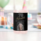 70 and Fabulous Elegant Black Photo 70th Birthday Party Can Glass. The saying 70 and fabulous is in modern script. Make your own 70th birthday party wine labels for her. Customise with the name and age number and insert your photo into the template.