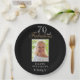 70 and Fabulous Black Elegant Script Photo 70th Birthday Plates. Make your own 70th birthday party paper plates for her. Customise with the name and age and insert your photo into the template.