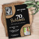 70 and Fabulous Gold Glitter 2 Photo 70th Birthday Invitation. Modern and elegant black and faux golden glitter birthday invitation for her. Add your photos - you can use an old and a new photo.