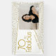 70 and Fabulous Gold Glitter Photo 70th Birthday Party Banner. Modern birthday backdrop with trendy typography and faux gold glitter spots. The design has a custom photo and name. Make personalised 70th birthday party banner for her.