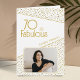 70 and Fabulous Gold Glitter Photo 70th Birthday Card. Modern birthday card with trendy typography and faux gold glitter spots. The design has a custom photo and name. You can change or erase the text inside. Make personalized 70th birthday card for her.