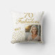 70 and Fabulous Gold Glitter Photo 70th Birthday Throw Pillow. The design has faux gold glitter dots and the saying 70 and fabulous is in modern script. Make your own 70th birthday pillow for her. Customise with the name, age and insert your photo into the template.