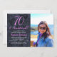 Personalise this elegant pink black birthday party invitation with the name and photo of the person celebrating a very special day in their life. A 70th birthday is a special milestone to celebrate. Mark the occasion by creating a party and sending invitations to all the special people in their life. Shop our store for gifts that you can personalise with this same elegant design on birthday gift mugs, wine labels and birthday cards.