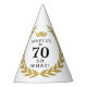 70 So what Funny Laurel Wreath Crown 70th Birthday Party Hat. A funny quote I`m 70 so what in modern bold fonts. The design has a laurel wreath around the words and a crown above the custom name. Add your name. Perfect birthday hat for a man with a sense of humour.