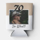 70 So what Funny Quote 70th Birthday Can Cooler. 70th birthday party custom can coolers for someone celebrating 70 years. It comes with a funny and motivational quote 70 So What! and is perfect for a person with a sense of humour. The cooler is in the beige and black colours. Insert your photo into the template and change the age.