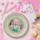 70 Your Photo Random Number Pattern Gold/White Paper Plate